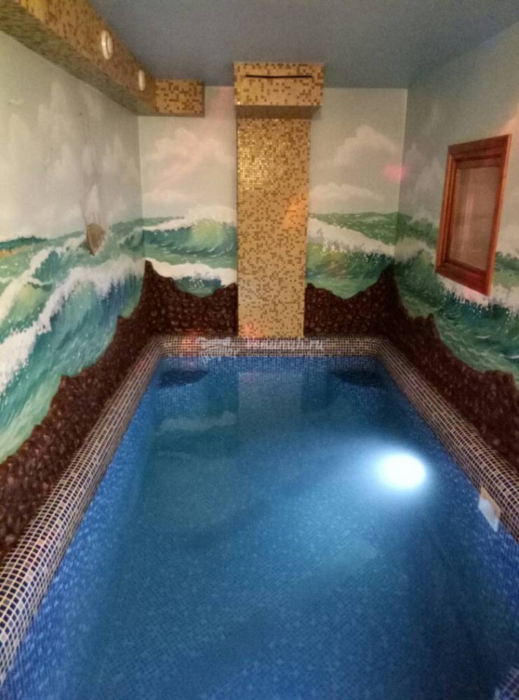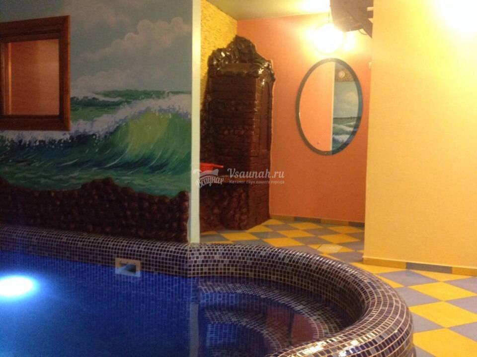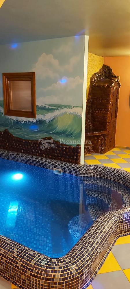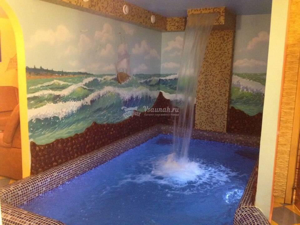 После горячего парения под веник гости смогут охладиться в чистейшем бассейне с водопадом, гейзером и противотоком, а затем переместиться в зону отдыха с: