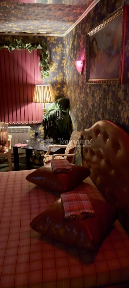 Также в сауне имеется отдельная уютная комната отдыха с большой мягкой кроватью для желающих уединиться и немного отдохнуть после насыщенных парных процедур.